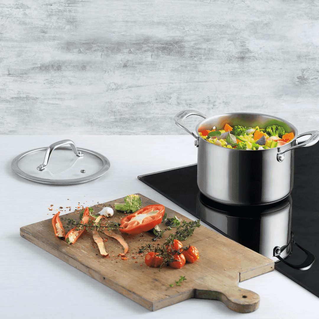 סיר מסדרת Allround המציע פתרון בישול מושלם למגוון רחב של מנות. הסיר בעל תכולה של 8.5 ליטר וקוטר 24 ס”מ, עשוי ממתכת אל חלד (Inox 18/10) איכותית ועמידה ומבטיח פיזור חום אחיד. בסיס עבה שומר ומפזר את החום בצורה מושלמת, כך שהבישול מתבצע בצורה יעילה ומדויקת. הסיר מתאים לשימוש על כל סוגי הכיריים, כולל אינדוקציה ומבטיח עמידות גבוהה לאורך זמן. הידיות נשארות קרות במהלך השימוש ומאפשרות אחיזה נוחה ובטוחה. מכסה הזכוכית מבטיח ראות מלאה במהלך הבישול. בטוח לשימוש בתנור ומספק פתרון נוח לכל מטבח.