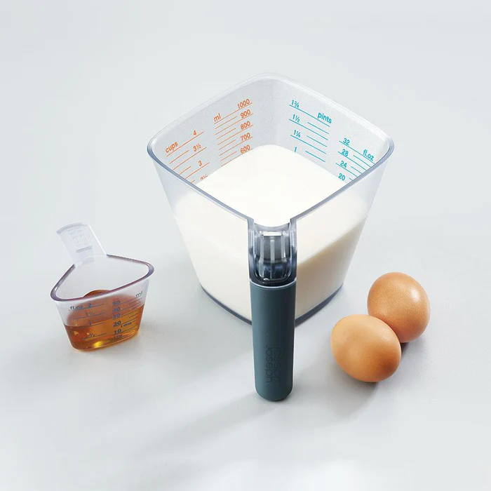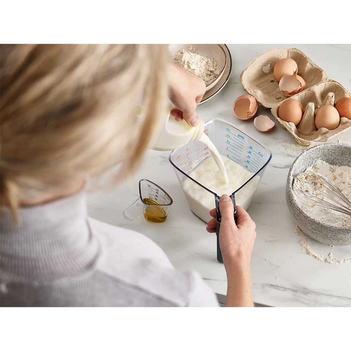 קנקן מדידה עם מידות קלות לקריאה בעיצוב מרובע. מאפשר מדידה עד 1 ליטר (4 כוסות). מעוצב עם כוס מיני לנפח קטן יותר עד 50 מ"ל . למוצר ידית קלה לאחיזה. מאפשר מזיגה קלה ומדוייקת.